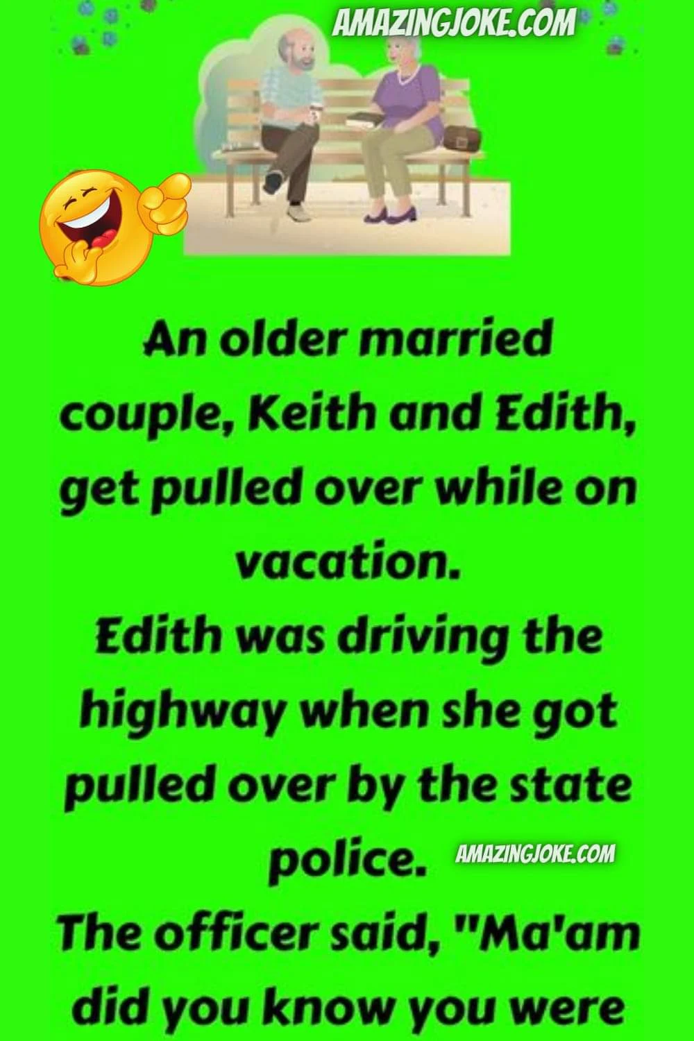 An older married couple, Keith and Edith, get pulled over while on vacation.